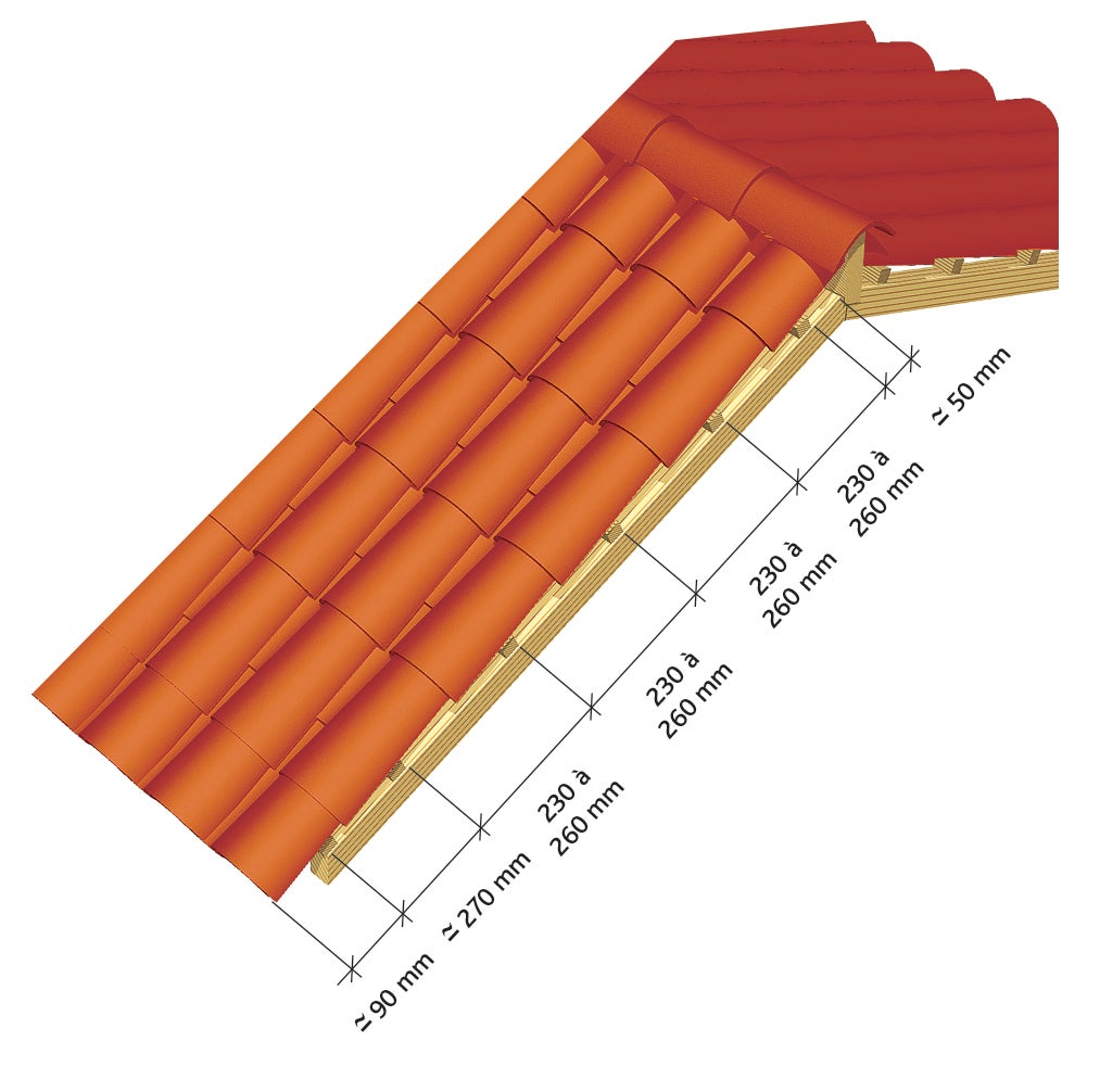 Cotations pour la pose de la tuile CANAL CHARENTAISE Poudenx d'EDILIANS