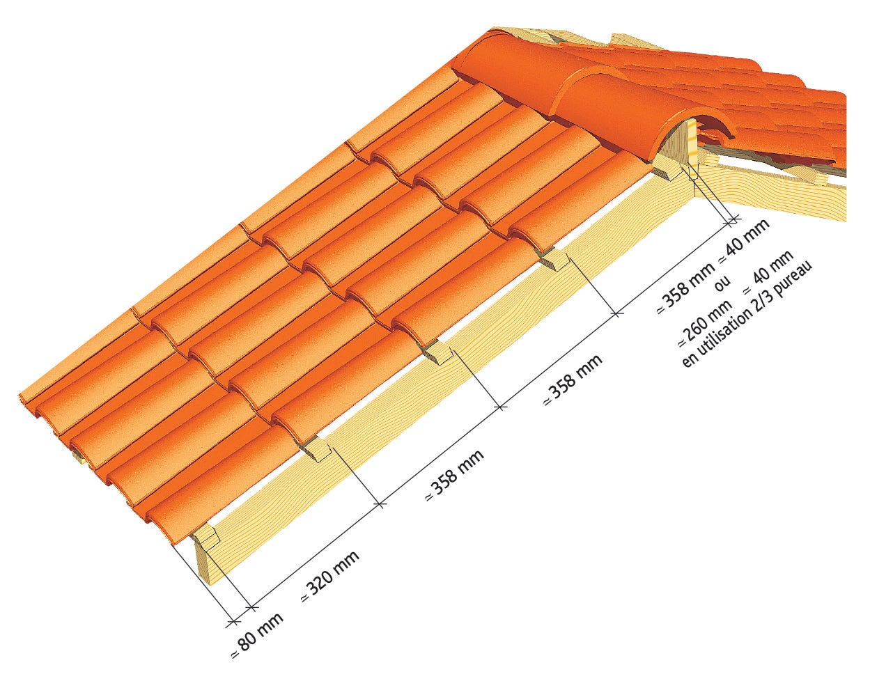 Tuile MERIDIONALE Poudenx d'EDILIANS : Pose sans rives rondes