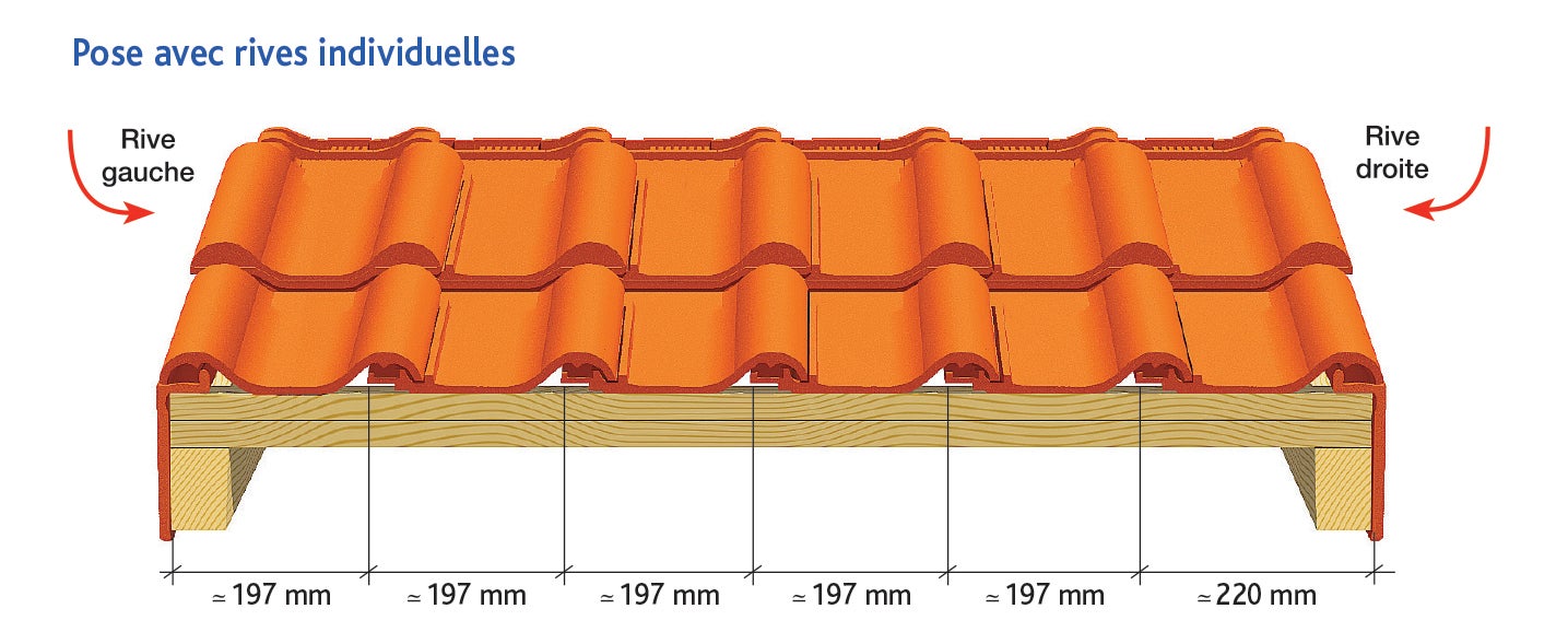 Tuile PANNE H2 Huguenot d'EDILIANS : Pose avec rives individuelles