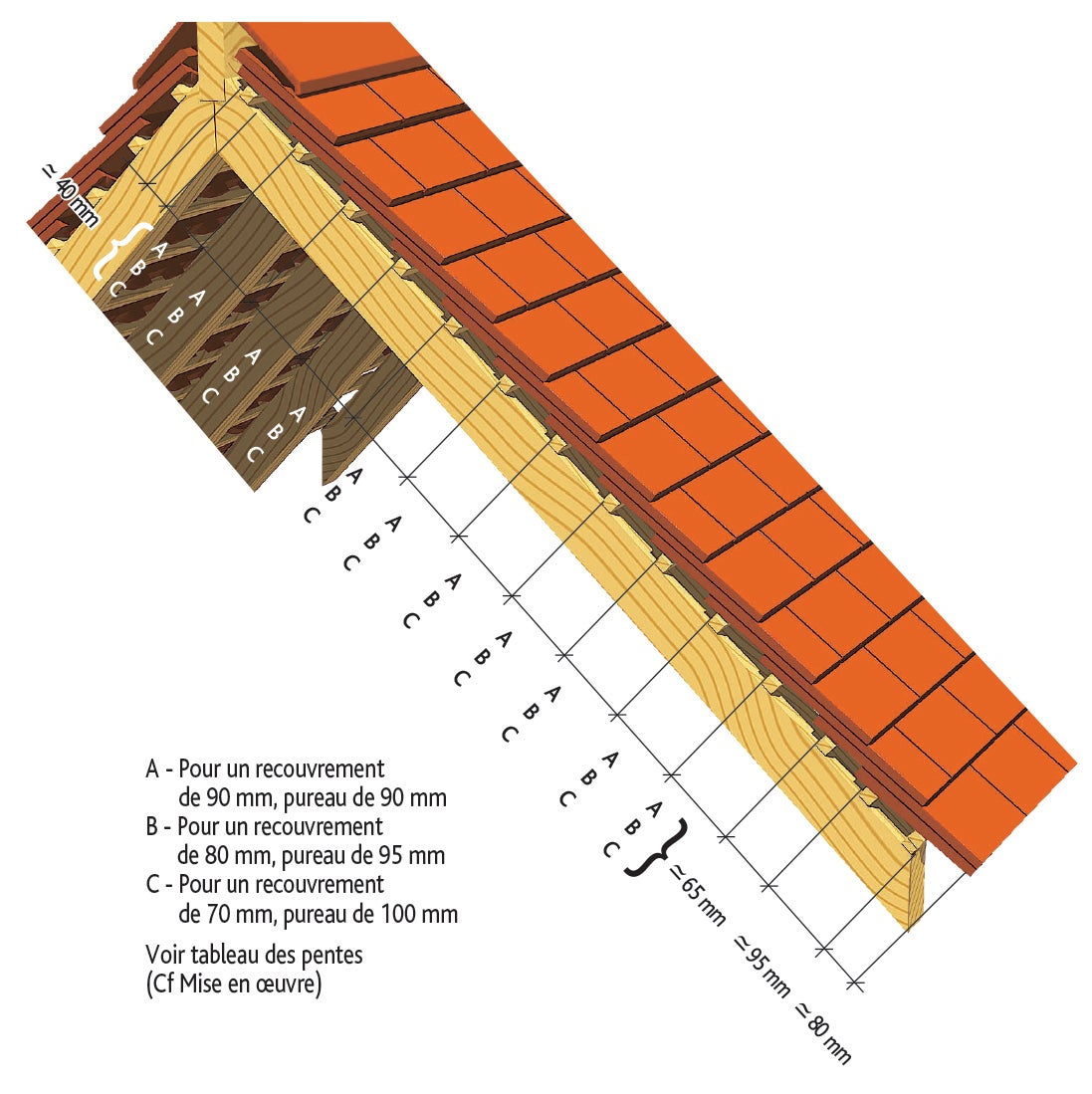 Cotations pour la pose de la tuile PLATE PRESSEE 17X27 Ste Foy d'EDILIANS