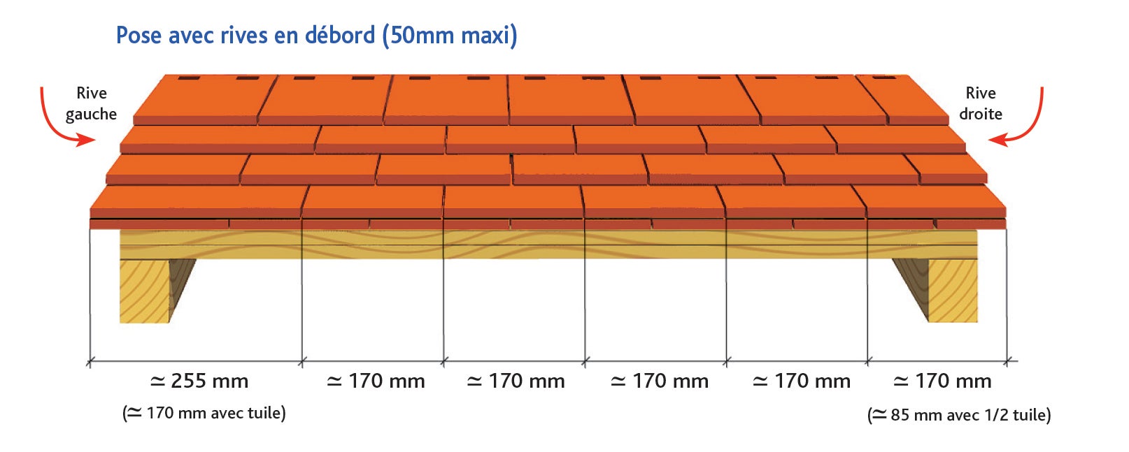 Tuile PLATE PRESSEE 17X27 Ste Foy d'EDILIANS : Pose avec rives en debord